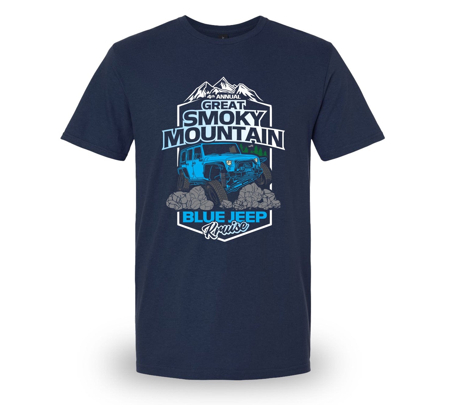 Limited edition commemorative shirt for the 2025 GREAT SMOKY MOUNTAIN BLUE JEEP GROUP PHOTO & KRUISE! The shirts will say "4th Annual".